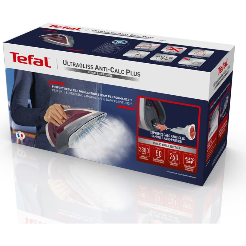 Tefal Ultragliss Anti-Calc Plus FV6840 Steam iron 2800 W Purple, Silver